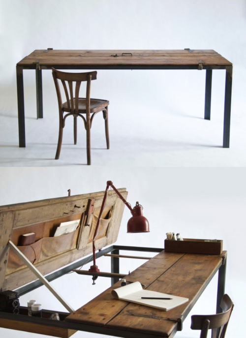 Manoteca is a design studio located in Bologna (Italy) focusing on reclaimed furniture design. The first piece is called outdoor, it’s a table built starting from an old exterior door. It can be used as a table for 8 or it can be opened and used as desk/work station. See more of this type of stuff at at Manoteca’s site.