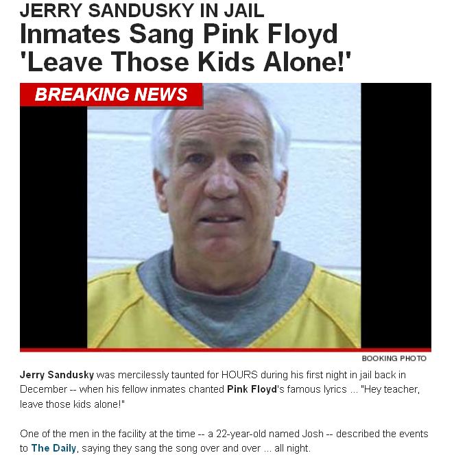 If Jerry Sandusky didn’t know who Pink Floyd was before, he does now.