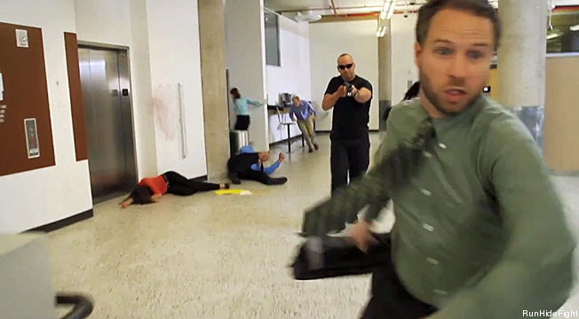 A new video produced by the City of Houston Mayor’s Office of Public Safety and Homeland Security teaches us how to survive an office mass shooting. The 6-minute PSA, titled “RUN. HIDE. FIGHT. Surviving an Active Shooter Event,” features actors staging a workplace shooting, while a narrator offers tips to viewers.