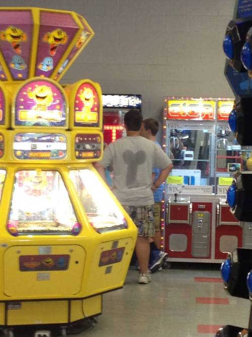 Unfortunate sweat stain at the arcade. I wonder what game he was playing?