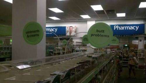 This entry was posted in Funny Pictures & Videos, Weird News Crazy Videos and Conspiracy and tagged aisle, butt problems, funny signs, funny store, health issues. Bookmark the permalink.
