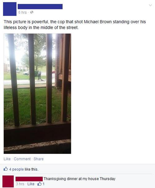 This entry was posted in Funny Pictures & Videos and tagged Darren Wilson, Facebook posts, Ferguson, Michael Brown. Bookmark the permalink.