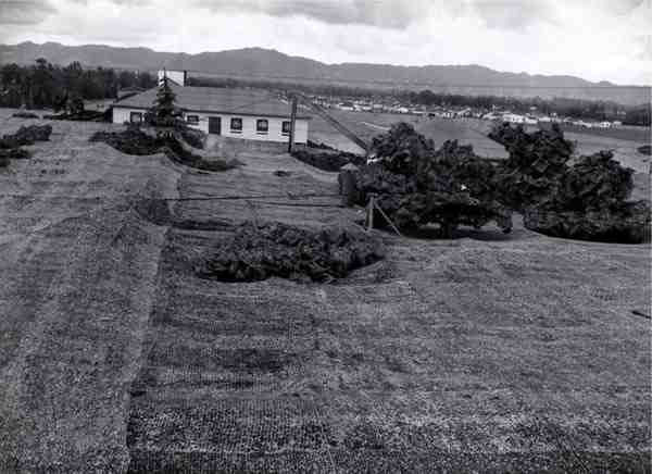 During World War II the Army Corps of Engineers needed to hide the Lockheed Burbank Aircraft Plant to protect it from a possible Japanese air attack. They covered it with camouflage netting to make it look like a rural subdivision from the air. Here are the pictures.