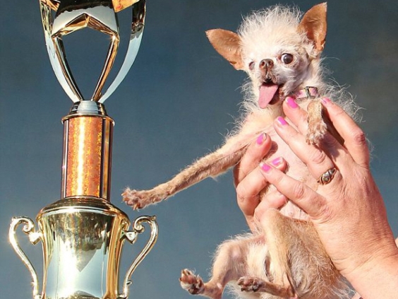 By the way, Yoda (pictured below), won the 2011 World’s Ugliest Dog contest at the Sonoma Marin Fair for her short tufts of hair, protruding tongue, and long, seemingly hairless legs.