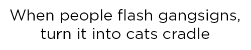 Tagged Bloods, cats cradle, Crips, gang signs, lol