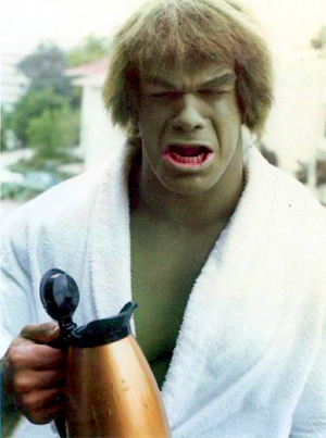 Tagged coffee, Funny, Incredible Hulk, Incredible Hulk Drinking coffee, lol, mornings, retro TV