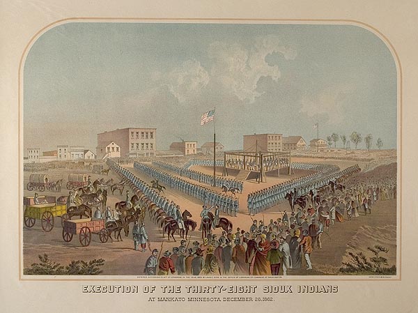Minnesota also has the dubious honor of being the state of the largest mass hanging in United States history. As a result of the Dakota Conflict, thirty-eight Native Americans were hung in Mankato, Minnesota.