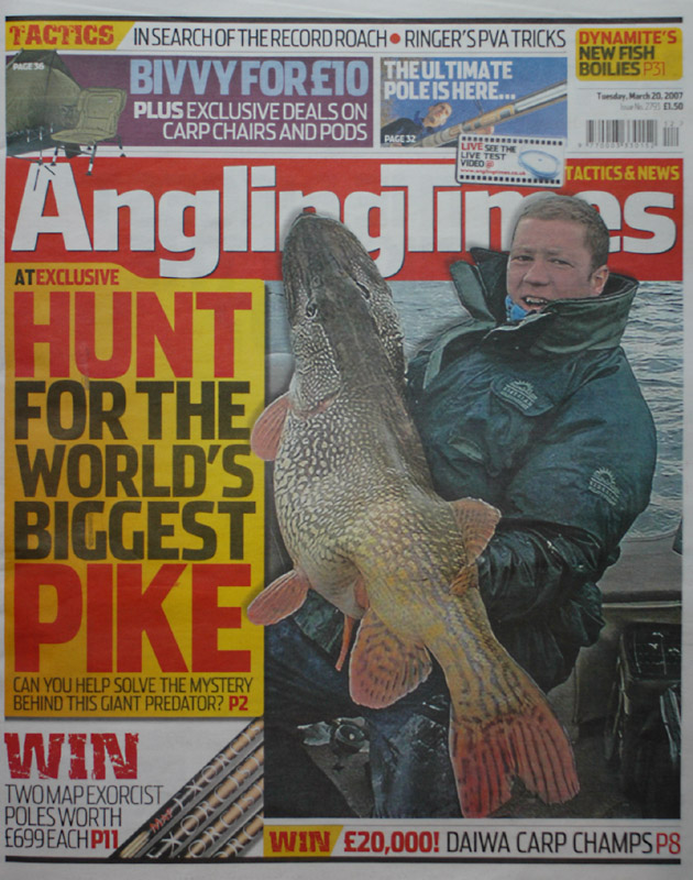 The most accurate story I can tell you is that the pike was actually caught in Holland by Ewout Blom. The Pike Anglers Club of Great Britian secured Ewout’s story for issue 117 of Pikelines.