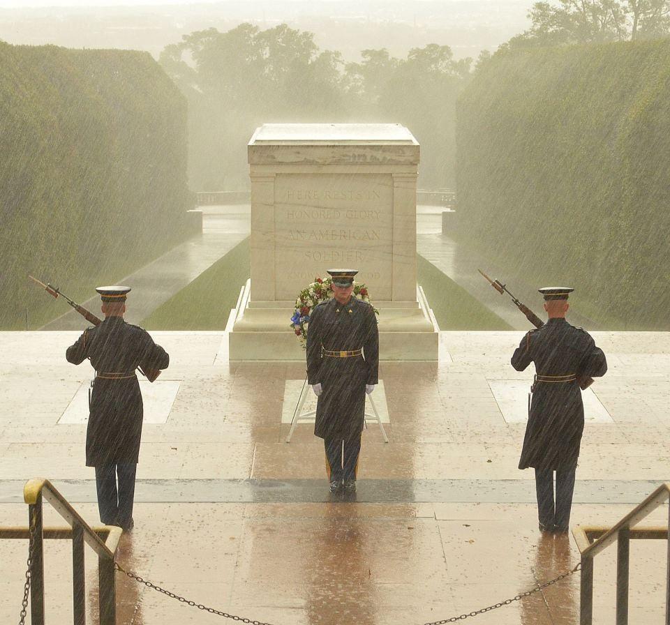 Even a hurricane won’t keep the honor guard from the Tomb of the Unknown Soldier in VA this morning.