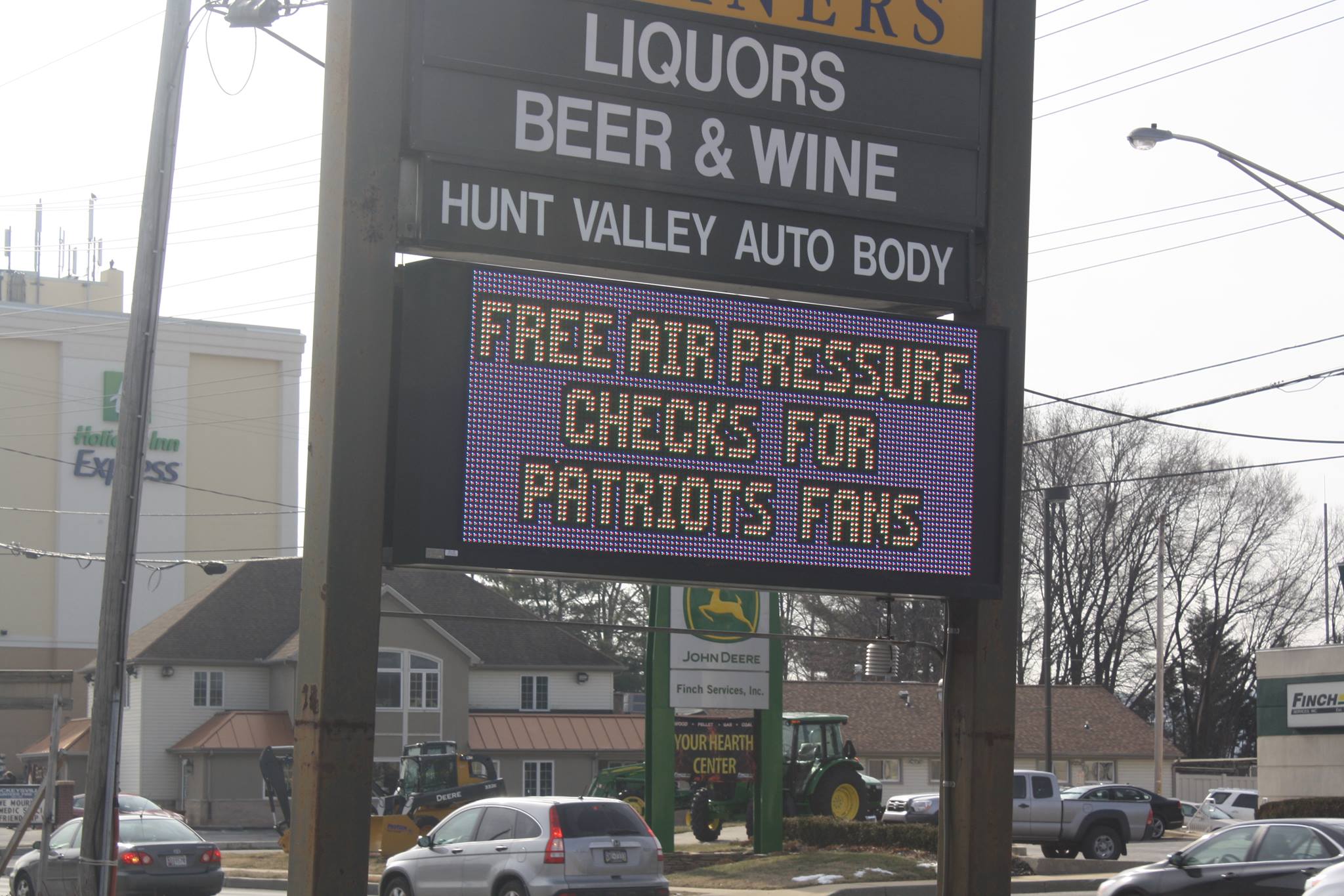 Tagged Deflategate, free air pressure checks, Goodyear sign, New England Patriots