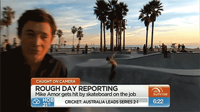 Tagged lol, news fail, reporter gif at skateboard park, Reporter injured gif, skate park injury