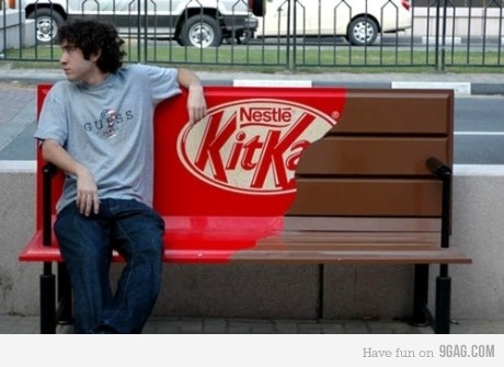 Clever use of bus bench advertising from Nestle to promote the KIT KAT chocolate bar. (via)