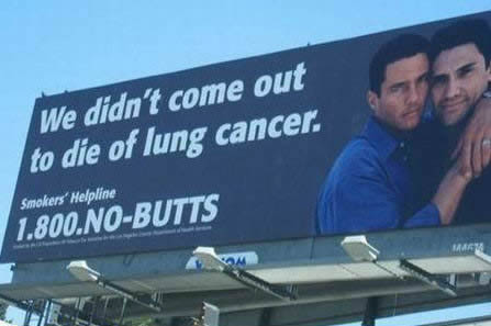 Tagged anti-smoking ad, funny billboard, gays, PSA, Smoking