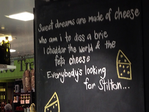 Tagged cheese sign, Funny, restaurant, sweet dreams