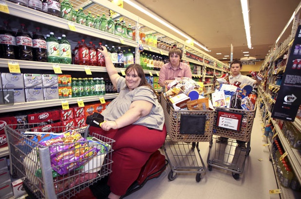Susanne Eman, 32, and her two sons, Brendin and Gabriel, do their weekly shopping trip at the local supermarket in Casa Grande, Arizona. Photo: Laurentiu Garofeanu / Barcroft Media