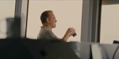 Hanks is shown pointing, laughing, and putting his own glasses on the ‘drunk’ guy, who ends up face down in front of some pizza.